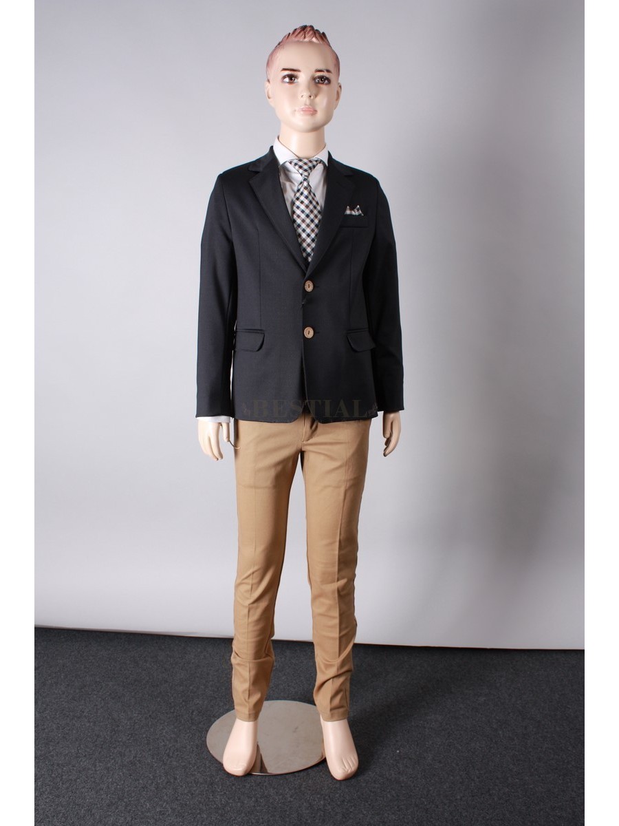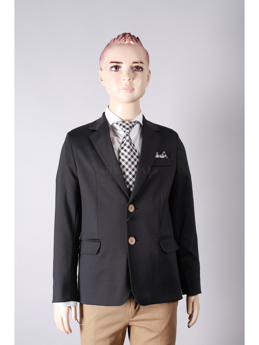 . Americana de color azul marino con pañuelo acuadros  y boton en madera .