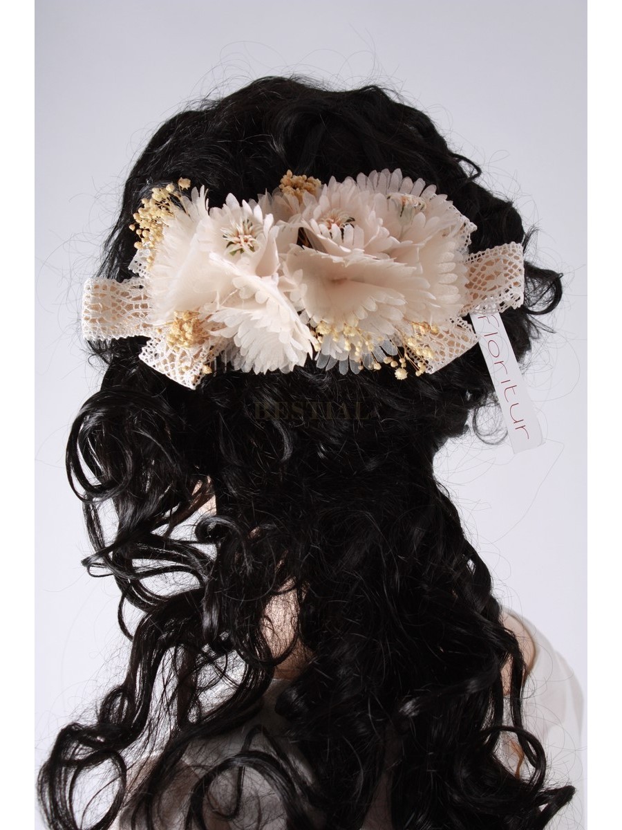 Prendido de comunión hecho a mano formado por flores color marfil, y flores paniculata (flor natural tratada)