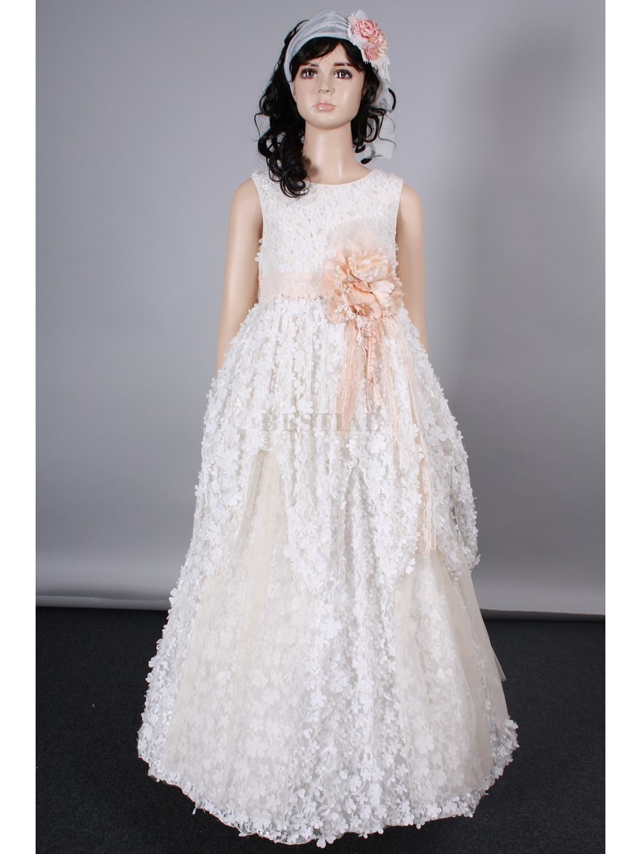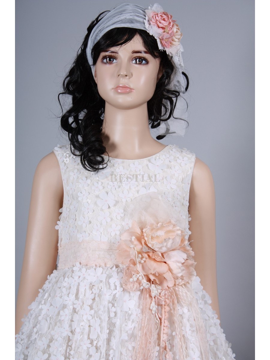 Vestido comunion sin mangas y tejido en tul con flores que hace que sea un vestido unico en comuniòn.